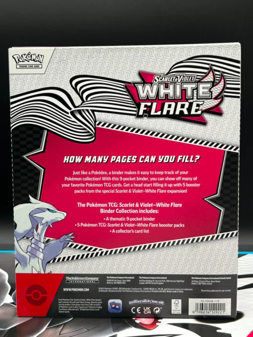 La Pokémon White Flare Binder Collection est un produit officiel issu de l’extension White Flare de la série Scarlet & Violet du Pokémon Trading Card Game. Elle associe un classeur collector de qualité et des boosters White Flare, offrant une solution complète pour conserver, protéger et enrichir une collection.