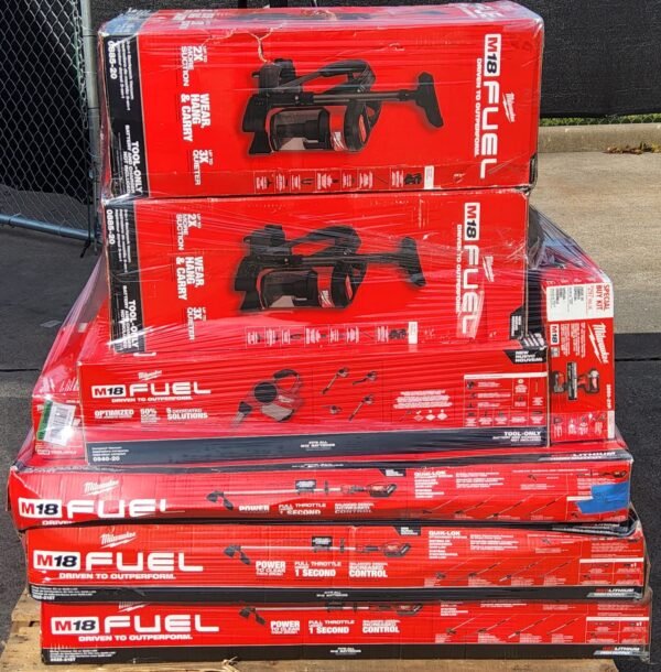 Chaque palette regroupe exclusivement des milwaukee electric tool neufs, jamais utilisés, scellés en usine, avec tous les accessoires et emballages d’origine.
